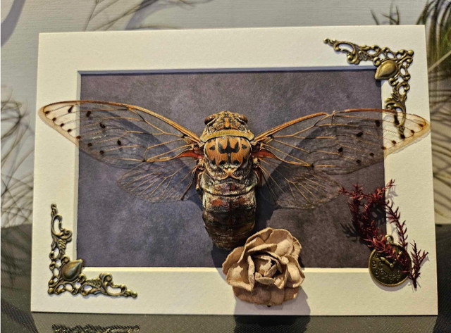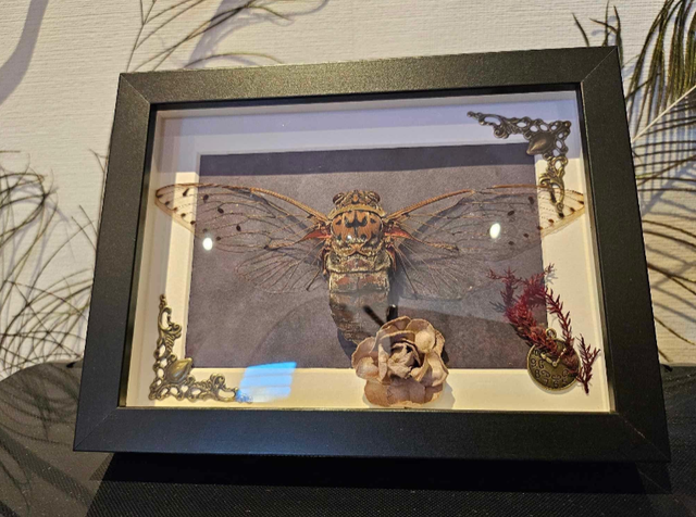 Prachtige grote cicaden in lijst. Geweldig om aan de muur te hangen of neer te zetten. Beide is mogelijk. Door het stijlvolle design maakt het een mooi item in huis.